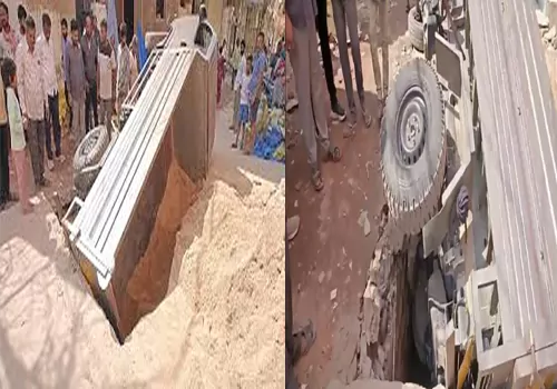బంజారాహిల్స్ రోడ్ నెంబర్-11 పరిధి ఉదయ్నగర్ బస్తీలో ఇసుక టిప్పర్ నాళాలో బోల్తా పడింది. డ్రైవర్ నిర్లక్ష్యం కారణంగా ఈ ప్రమాదం కనిపించింది. నాళా స్లాబ్ నాసిరకంగా ఉండటంతో వాహనంలో ఇరుక్కుపోయింది. దీంతో స్థానికులు కూరుకుపోయిన వాహనాన్ని స్థానికులు బయటకు తీశారు. జీహెచ్సి సిబ్బంది, హైడ్రా, జలమండలి అధికారులు, బంజారాహిల్స్ పోలీసులు ఘటనాస్థలిని పరిశీలించారు. గత ఆరు నెలల్లో ఇలాంటి ఘటన జరగడం ఇది రెండోసారి. అధికారులకు ఫిర్యాదు చేయడం లేదని స్ధానికులు ఆగ్రహం వ్యక్తం చేస్తున్నారు.