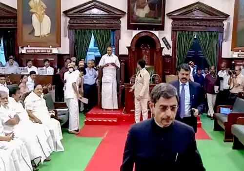 తమిళనాడు అసెంబ్లీ నుంచి ఆ రాష్ట్ర గవర్నర్ ఆర్ఎన్ రవి వాకౌట్ చేశారు. ఔను తమిళనాడు అసెంబ్లీ సమావేశాల ప్రారంభం సందర్భంగా సభనుద్దేశించి ప్రసంగించాల్సిన గవర్నర్ మధ్యలోనే వాకౌట్ చేశారు. ఈ విషయం లోక్ భవన్ విడుదల చేసిన ప్రకటనలో దేశంలోని అన్ని శాసన సభలలో గవర్నర్ ప్రసంగానికి ముందు జాతీయ గీతాలాపన చేయడం సంప్రదాయంగా కొనసాగుతోందని, కానీ స్టాలిన్ ప్రభుత్వం మాత్రం ఆ సంప్రదాయాన్ని బ్రేక్ చేసిందనీ, దీనికి నిరసనగా గవర్నర్ ఆర్.ఎన్.రవి అసెంబ్లీ నుంచి వాకౌట్‌ని ప్రకటించారు.