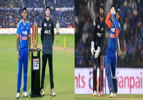 రాయ్పుర్ వేదికగా న్యూజిలాండ్తో జరిగిన రెండో టీ20 మ్యాచ్లో పలు రికార్డులు నమోదయ్యాయి. టీ20 క్రికెట్ చరిత్రలో 200 కంటే ఎక్కువ పరుగుల లక్ష్యాన్ని అత్యంత వేగంగా ఛేదించిన జట్టుగా భారత్ ప్రపంచ రికార్డు సృష్టించింది. 209 పరుగులను మరో 28 బంతులు మిగిలి ఉండగానే పూర్తి చేసింది. అంతకు ముందు ఈ రికార్డు పాకిస్తాన్ పేరుతో ఉండేది. సుదీర్ఘ కాలం తర్వాత అంతర్జాతీయ క్రికెట్లోకి పునరాగమనం చేసిన ఇషాన్ కిషన్(రెండో టీ20లో విధ్వంసం సృష్టించాడు.