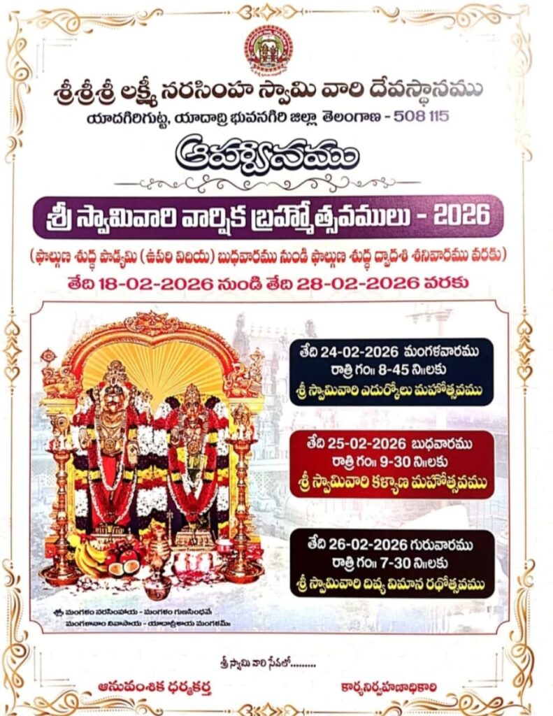 నేటి నుంచి యాదగిరిగుట్ట శ్రీ లక్ష్మీ నరసింహ స్వామి వారి వార్షిక బ్రహ్మోత్సవాలు – Mudra News