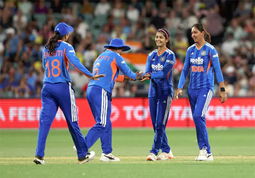 ఆడిలైడ్ వేదికగా జరిగిన మూడో టీ20 భారత్ మహిళ జట్టు ఆస్ట్రేలియాపై 17 పరుగుల తేడాతో ఘన విజయం సాధించింది. దీంతో 2-1తో సిరీస్ను కైవసం చేసుకుంది. ఆసీస్ గడ్డపై భారత్కు ఇదే తొలి సిరీస్. మొదట బ్యాటింగ్ చేసిన టీమ్ఇండియా నిర్ణీత 20 ఓవర్లలో 6 వికెట్ల నష్టానికి 176 పరుగులు చేసింది. స్మృతి మంధాన (82 పరుగులు), జెమిమా రోడ్రిగ్స్ (59 రన్స్) అర్ధ సెంచరీలతో రాణించారు. షఫాలీ వర్మ (7 పరుగులు), రిచా ఘోష్ (18 పరుగులు) విఫలమయ్యారు.
