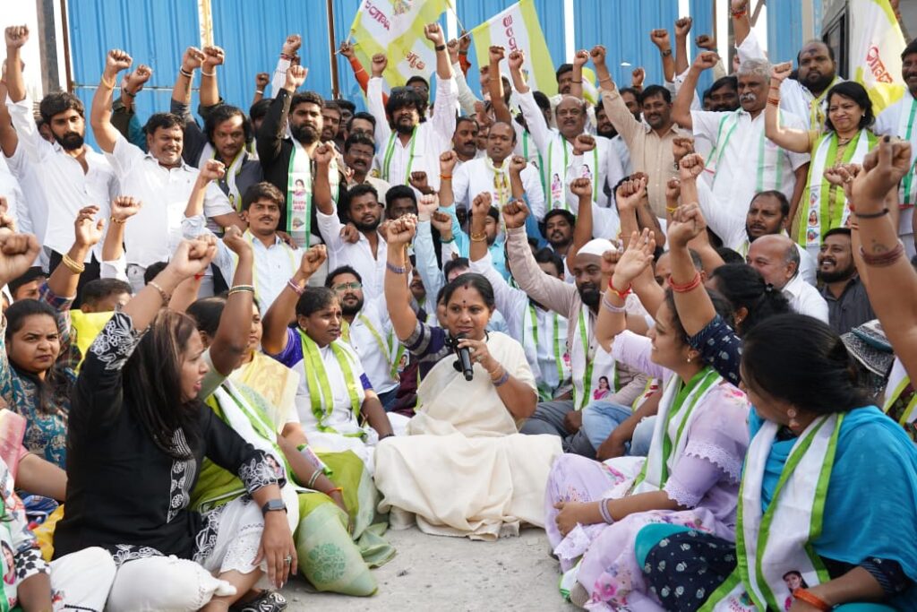 నార్సింగిలో మూసీ నదిని ఆక్రమించి నిర్మిస్తోన్న భారీ రియల్ ఎస్టేట్ వెంచర్ పై చర్యలు చేపట్టాలని కోరుతూ స్థానికులతో ఆందోళన చేస్తున్న తెలంగాణ జాగృతి అధ్యక్షురాలు కల్వకుంట్ల కవిత గారు – Mudra News